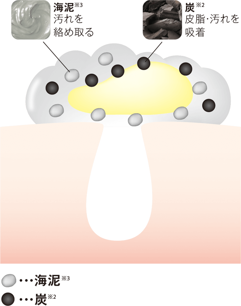 海泥が汚れを絡めとり、炭が皮脂や毛穴汚れを吸着。肌に不要なものをすっきり取り去ります。