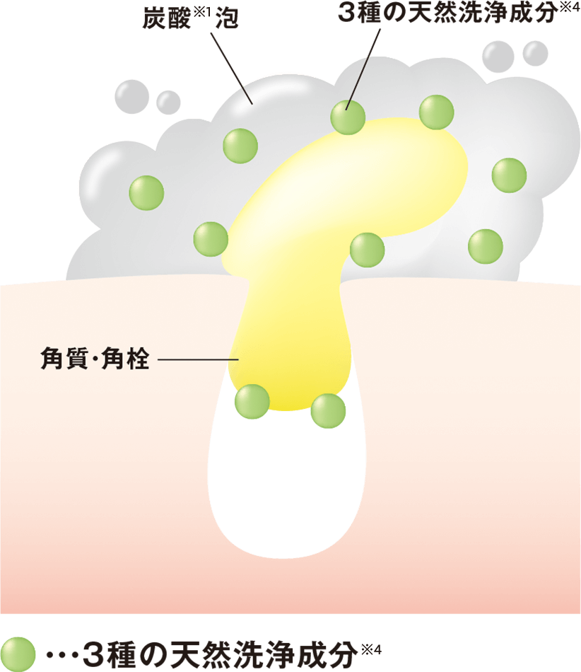 炭酸成分を含む泡と3種の洗浄成分が毛穴汚れを浮かせます。