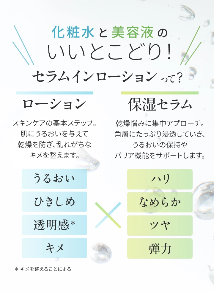 化粧水と美容液の2役を担う“セラムインローション”で、うるおいに満ちたふっくらツヤ肌へ