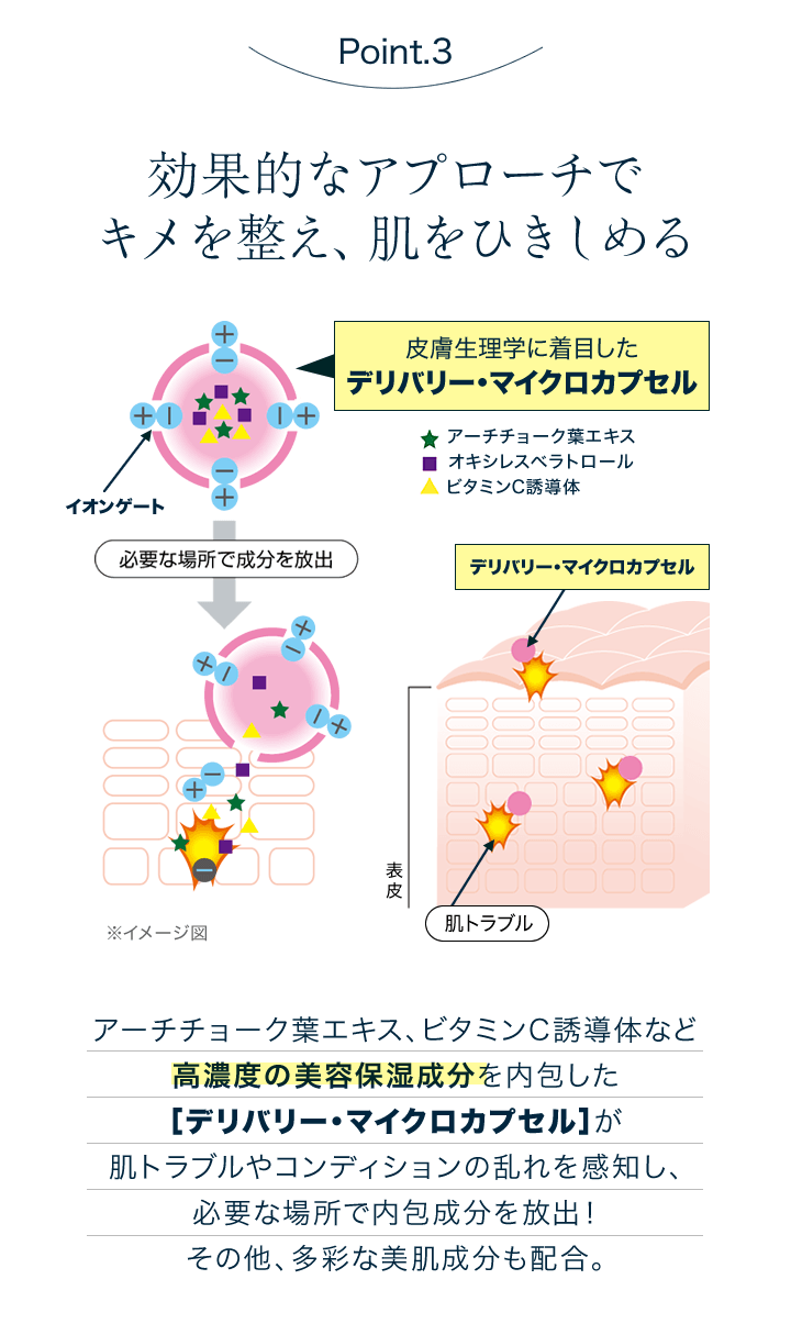 うるおいで満たしたみずみずしい肌をキュッと引き締めて、しっとりハリ美肌へ