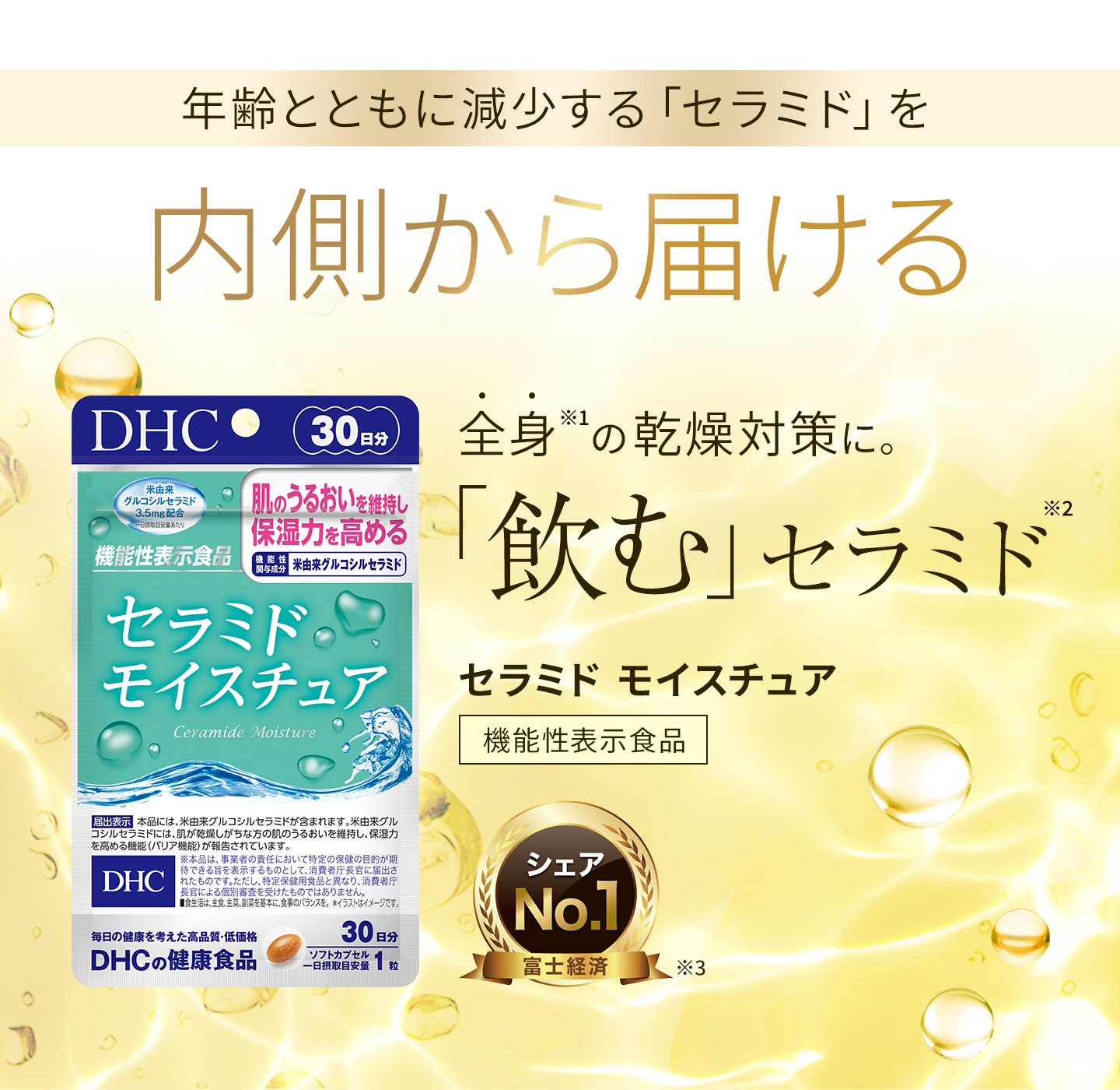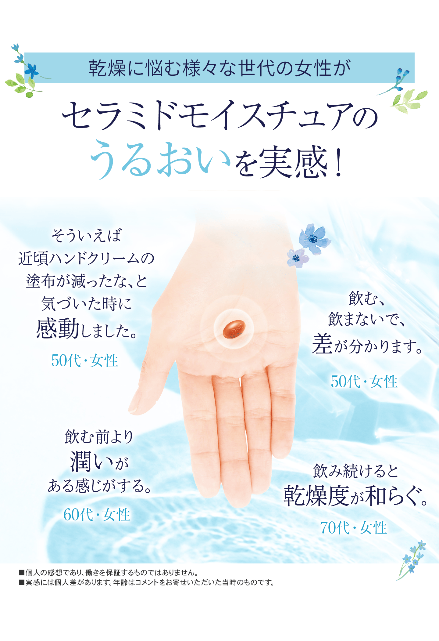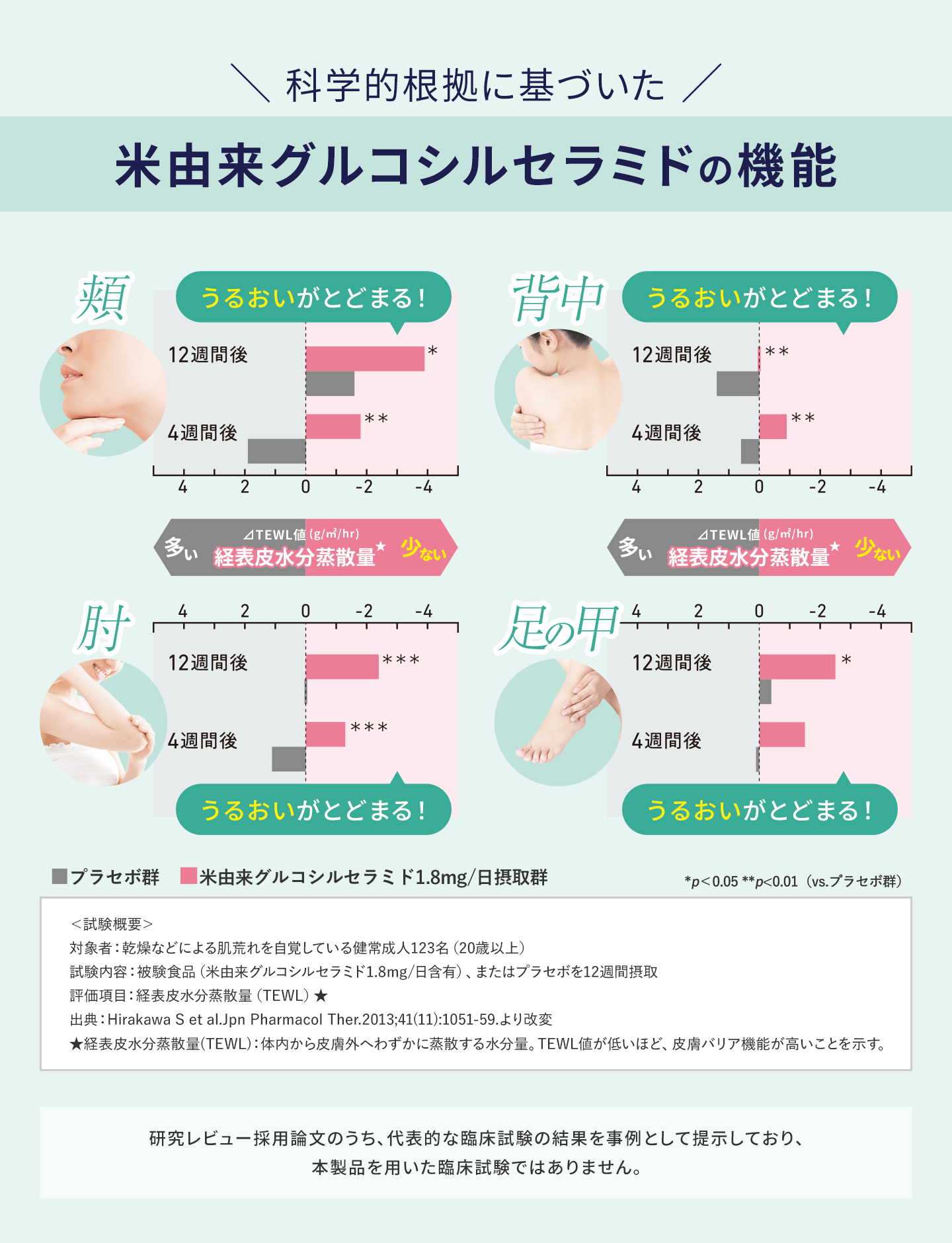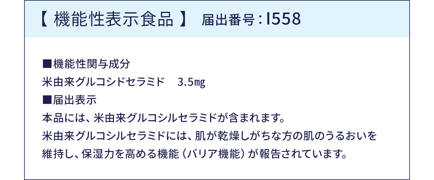 - ※2 セラミドモイスチュアの機能性関与成分米由来グルコシルセラミドによる。
