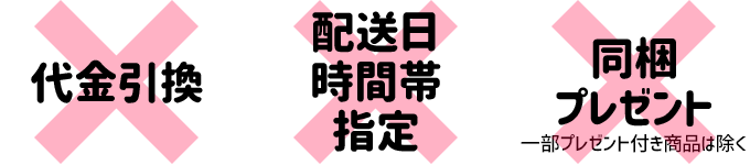 - ネコポスをご指定の場合、代金引換・配達日指定・時間帯指定はご利用いただけません。