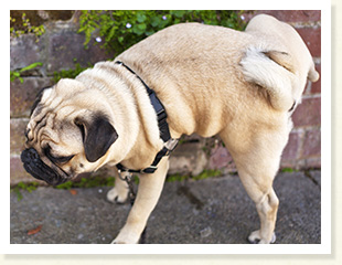 足を引きずる・よろめいたりふらついたりする・痛い足に体重をかけられず足を上げたまま・階段やソファーにのぼれない・横座りをする・散歩に行きたがらない