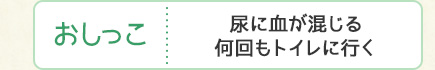 尿に血がまじる・何回もトイレに行く・いつまでもトイレにいる・尿をチビチビ出す・トイレ以外のところでする・喜ぶとおもらしするようになった・尿の切れが悪い