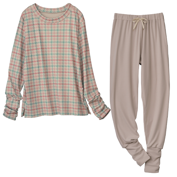 ぬくぬくフリース上下セット(柄パンツ)