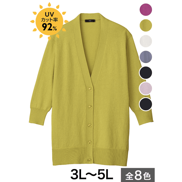 洗える・綿混エアリーVネックカーディガン(UV美肌)(大きいサイズ)
