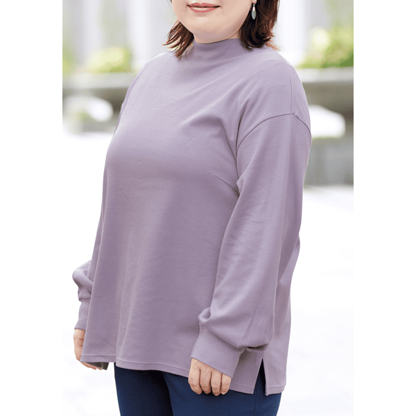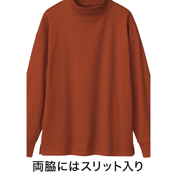 綿100%で肌にやさしいハイネックカットソー。吸湿発熱機能により、天然素材でありながらあたたかさも実現しました。ゆったりとしたリラックス感のあるシルエットです。