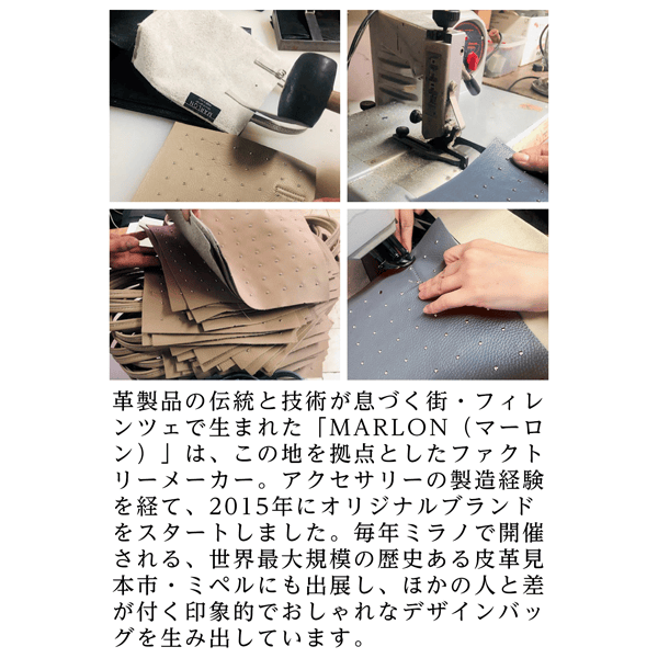 イタリア・フィレンツェで伝統的な革製品づくりをしているMARLON社のスモールトート。口元にある革ヒモで、きゅっと結べばアクセントに。ショルダーと手持ちの2WAY仕様です。
