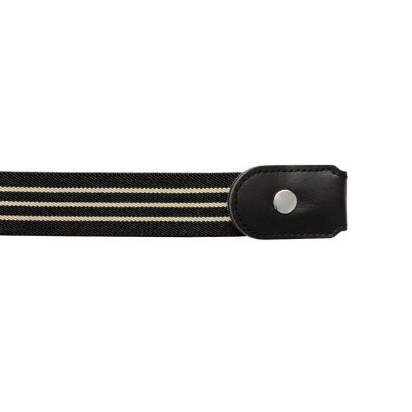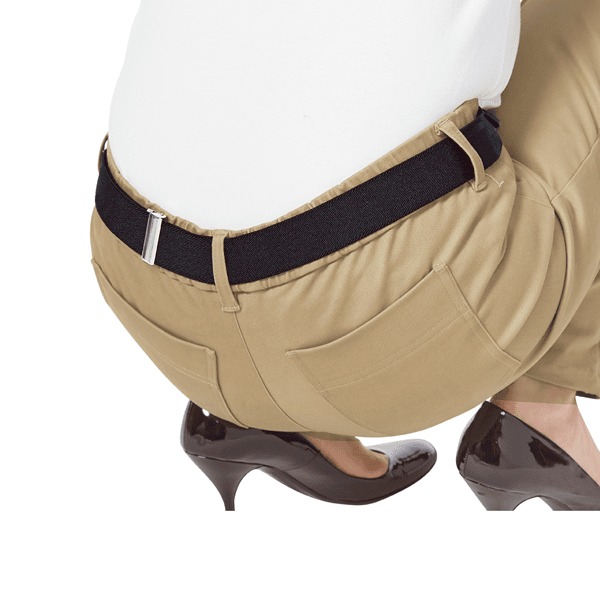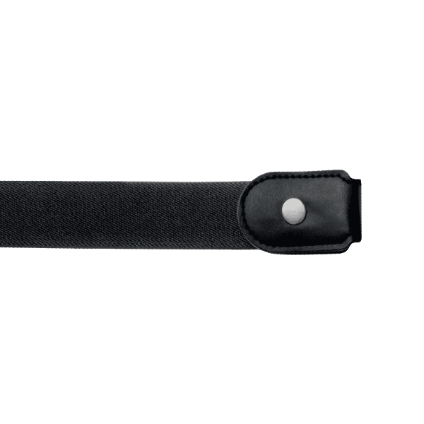 バックルをはずして、ベルトループに装着できるゴムベルト。パンツの脱ぎ着がかんたんなうえ、ホールド感があります。長さも自分好みのサイズに調節可能です。