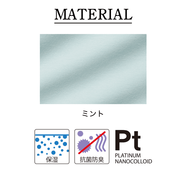 「化粧品メーカーだからできる、スキンケア発想の服を作りたい…」服は肌にふれるのですから、もっと肌のことを考えた服があってもいいはず。私たちは常日頃から、その夢を描き模索していました。そして具体的な構想が生まれたのが3年前のこと。DHCのスキンケア商品には、大人気の保湿ライン「プラチナシルバーシリーズ」があります。それにはプラチナナノコロイドの持つマイナス電位が、肌表面の水分子をひきつけてみずみずしさをサポートし、肌の保水力を支えます。私たちは、この肌のサビつきに対抗する素晴らしい美容成分”プラチナ“に着目したのです。「プラチナシルバーシリーズ」と同じ原材料を取り寄せ、プラチナをナノサイズまで微粒子化。それをコロイド状にし、繊維に配合することに成功しました。配合率の調整等を試行錯誤し、何度も生地を試作し、ようやく完成したのがこの『プラチナナノコロイド』シリーズです。化粧品同様、保湿機能に優れ、かつ抗菌防臭機能も兼ね備えることができました。それはもう、うっとりするほどなめらかな肌ざわり。おしゃれなカットソーは少し厚めの生地にし表面のツヤ感も美しい仕上がりになっています。私たちの力の結集がここにあります。ぜひご着用ください!JANコード:4511413045374