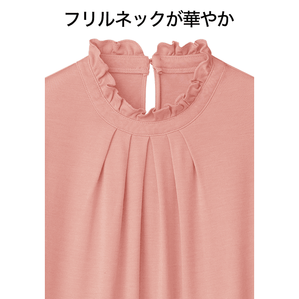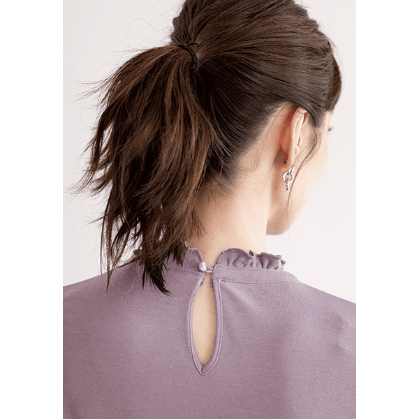 アルガンオイル配合でしっとりした肌ざわりのフリルネックカットソー