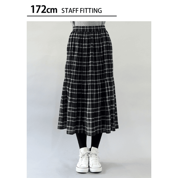 ベロア裏地があたたか♪プリーツに変化を付けた大人チェック柄スカート