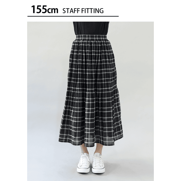 シワになりにくくソフトなタッチのチェック柄生地。繊細なマジョリカプリーツをほどこしました。