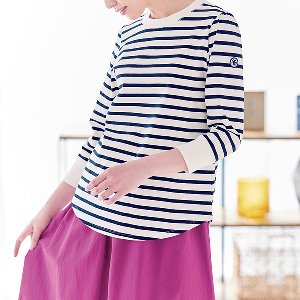 なかなか 7分袖のトップスが見つからなかった時、DHCさんで見つけ すぐ購入してみたら、肩のちょっとした膨らみが可愛く、綿100%なので 着心地も良く、何度洗っても型崩れしないですし、形がキレイで お気に入りの服です。