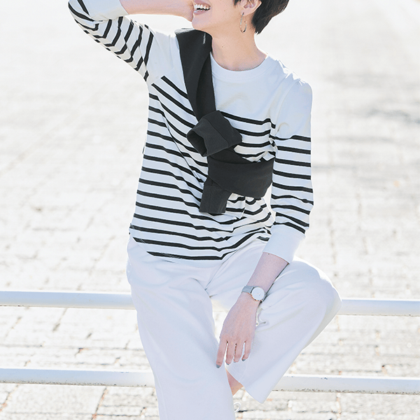 インナーが透けない厚地の生地なのが、この季節にはうれしいです!パッと着られる気軽なかんじがデイリー使いにぴったりです。ボトムもパンツやスカートなんでも合わせやすいです。