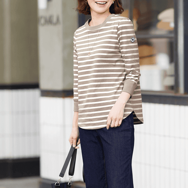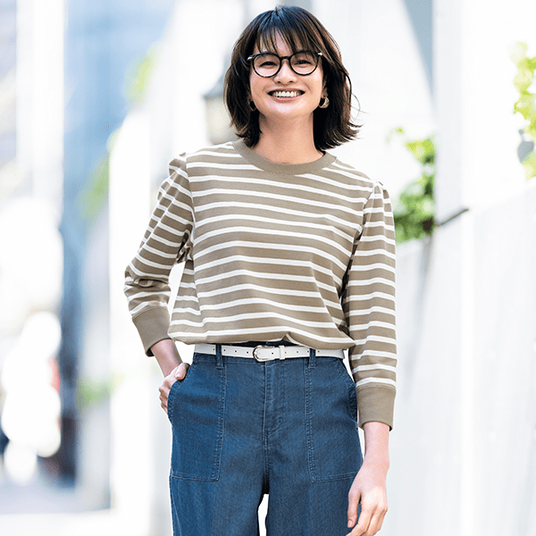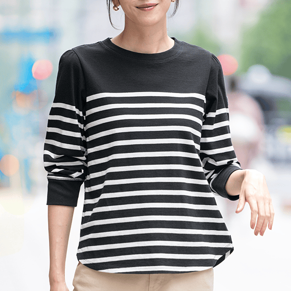 しっかりとして、洗濯を繰り返してもヘタりにくい綿100%のカットソー。袖山のギャザーやラウンドヘムで女性らしさをプラスしました。コンパクトなシルエットですっきりと見えます。