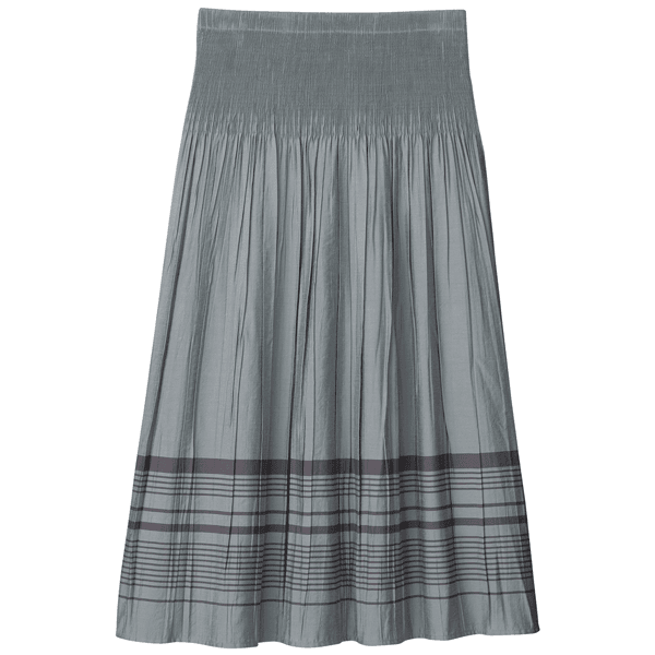 江戸時代中期に、当時の米沢藩主・上杉治憲が越後より織工を招き、製織業を伝えたのが「米沢織」のはじまりです。特殊な「縮布」の生産に成功し、養蚕業にも力を入れ、米沢の美しい絹の織物は全国に広まっていきました。こちらの「リバーシブルスカート」は、米沢の特殊ジャカード織機によって、生地の状態でウエストを縮ませ、スカートに仕上げました。縫製箇所を極限まで減らし、美しい生地を最大限に活かすことでストレスの少ない着用感を生み出しています。