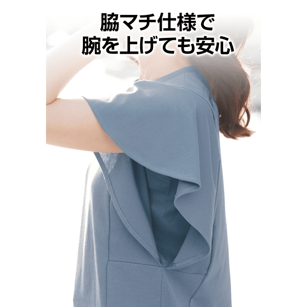 脇マチ仕様で腕を上げても安心♪二の腕をすっきり見せるカットソー