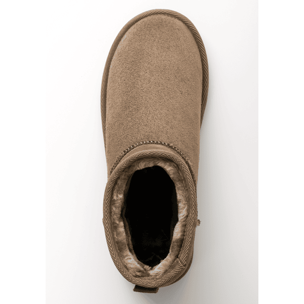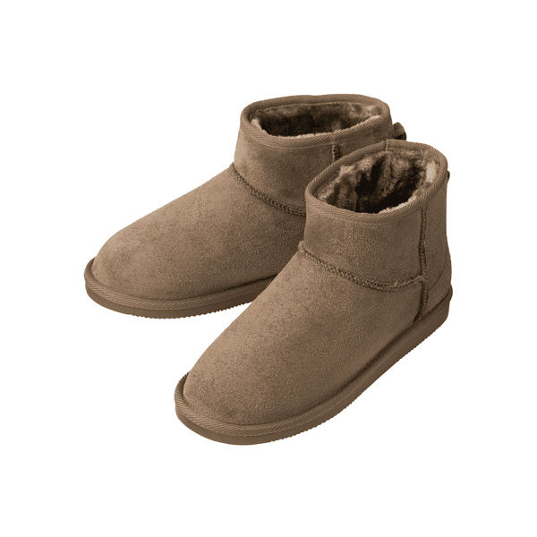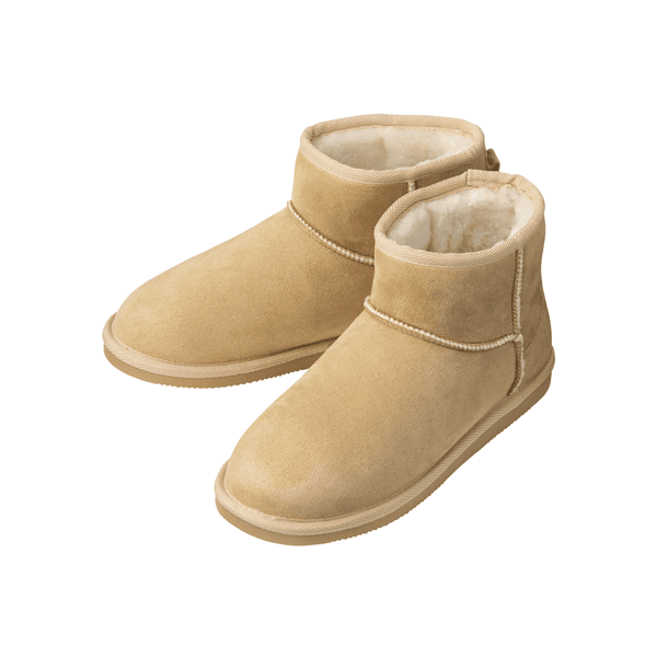 足長:23.0cm/ワイズ:E/試着サイズ:M/特徴:やや幅狭・甲薄- 再来のムートン調のブーツ、ショガーパンツなどにもあわせやすいショート丈です。大人も合わせやすいモカブラウンおすすめです。