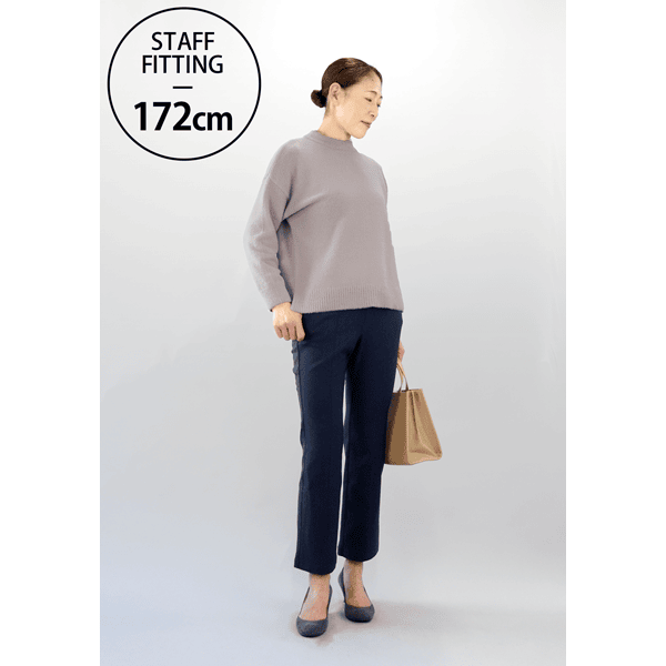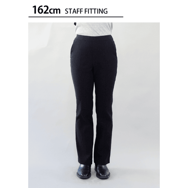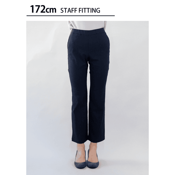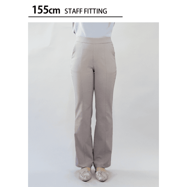 下半身をカバーしつつ、スタイルアップ効果のあるセミフレアシルエットパンツ。センターシーム入りで縦ラインを強調し、細見えします。締め付けがなく超快適な着用感です。
