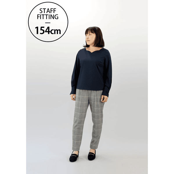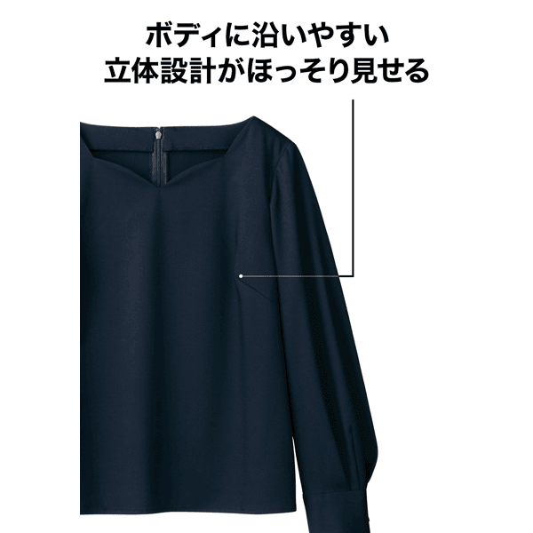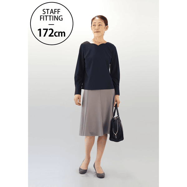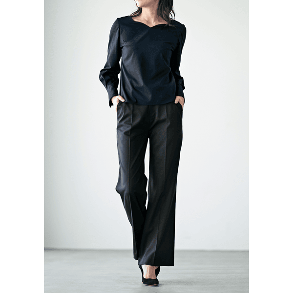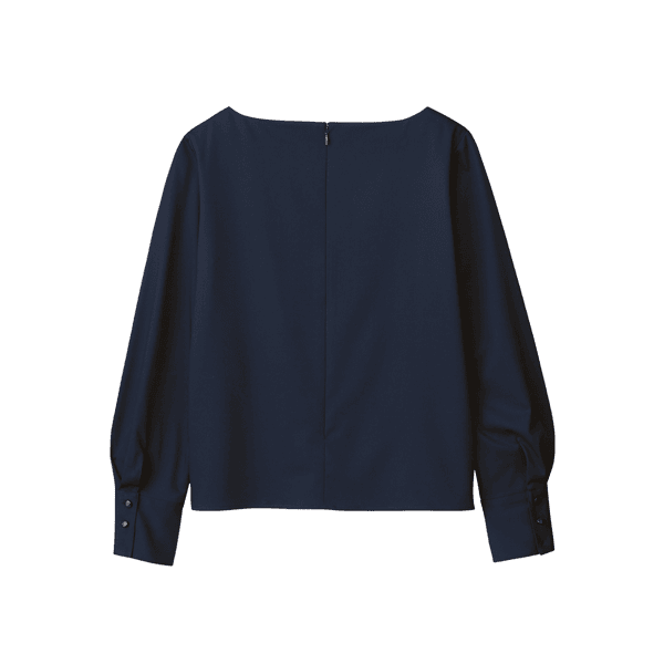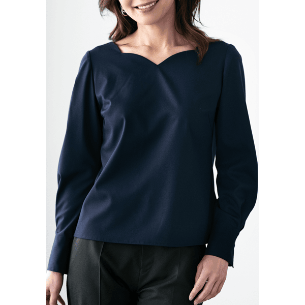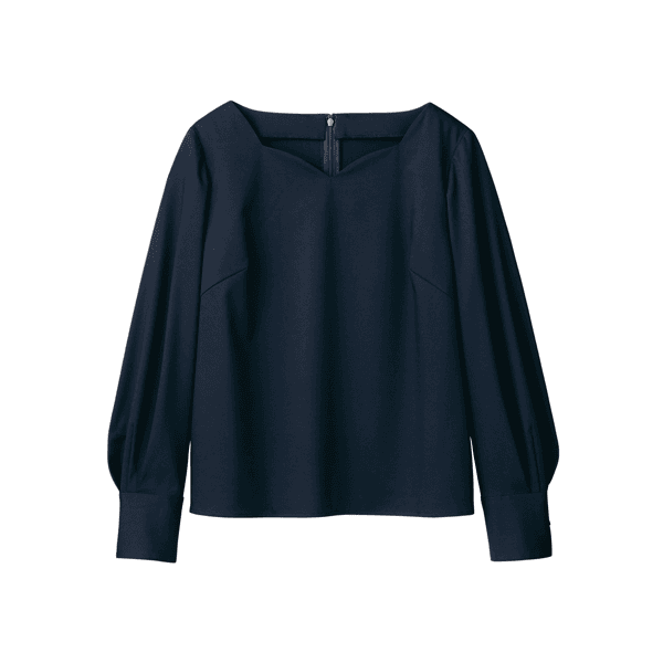 40代の体型研究プロジェクト第2弾!大人の女性を美しく魅せるブラウスが完成しました。大きくあいたネックラインが顔まわりや胸元をすっきりと美しく見せます。立体的なボディに沿うジャストサイズの設計が、着膨れを防ぎほっそりとした印象に。