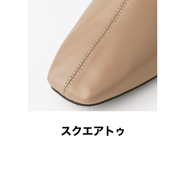 全方向にのびる2WAYストレッチ合皮で足に沿いやすくやわらかい履き心地。安定感のあるスクエアローヒールで歩きやすく、コーデにも合わせやすいシンプルなデザインです。