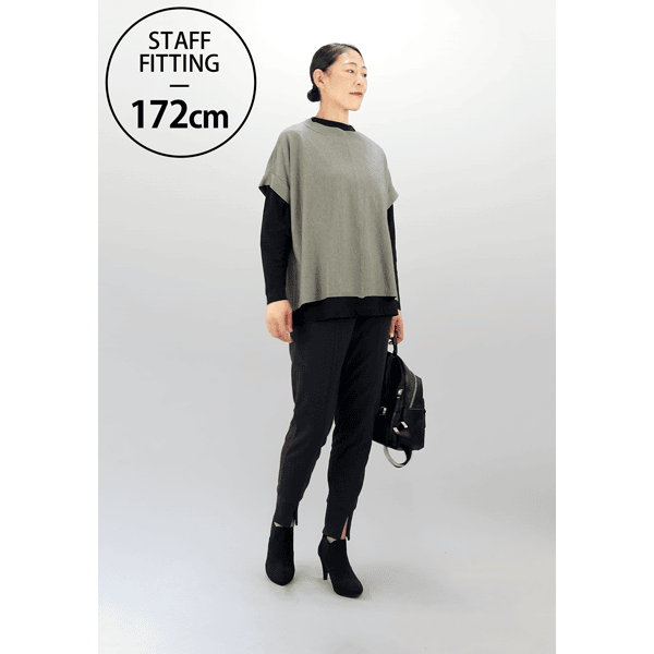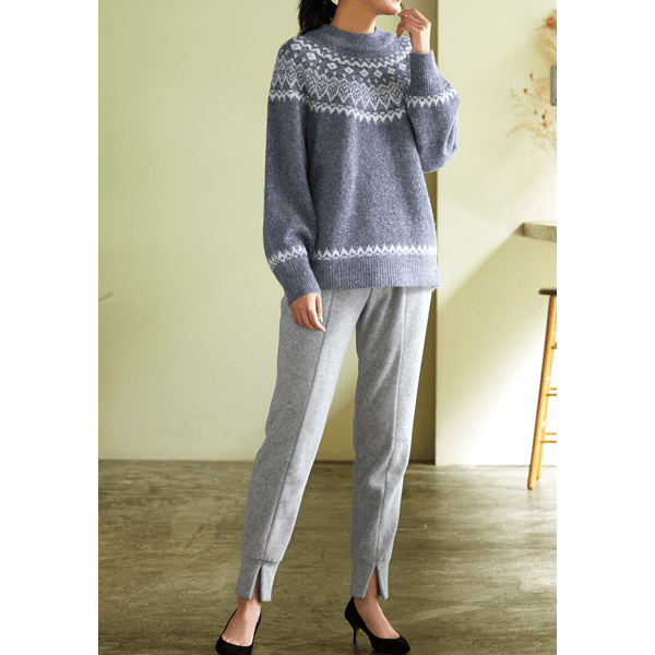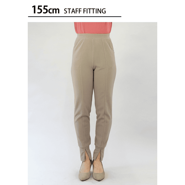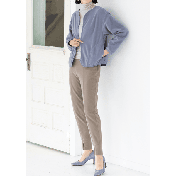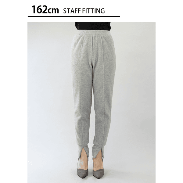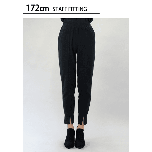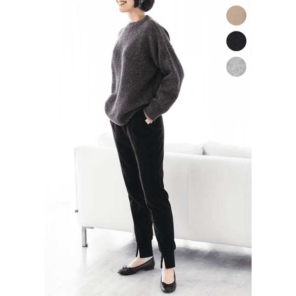 脚をすっぽり包んであったかなジョガーパンツ。裾スリットが抜け感をプラスし、センターシームで脚がきれいに見えます。スニーカーもヒールもOK、ウエストゴムでラクです。