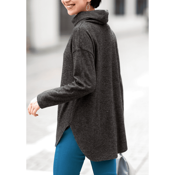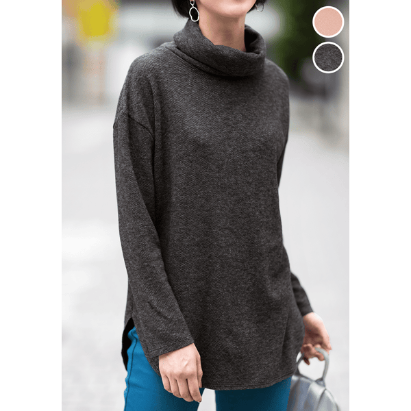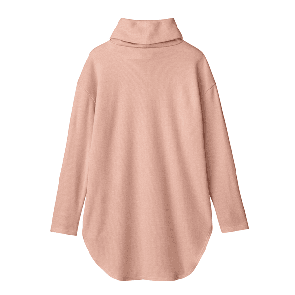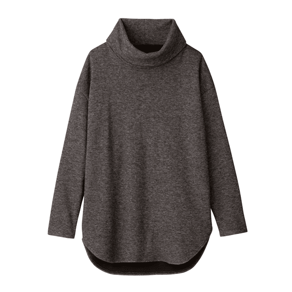 Iラインをつくる長めの丈感で、細見えするチュニック。ほどよいゆとりと長めの丈感がボディをすっぽりカバーします。ゆるく低めのオフタートルで窮屈感がなく、抜け感もアップします。