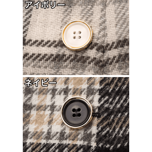 - 素材/【アイボリー】表地:ポリエステル50% アクリル44% レーヨン2% ナイロン2% 毛2% 裏地:ポリエステル100% 【ネイビー】表地:ポリエステル55% アクリル17% レーヨン14% 綿6% ナイロン5% 毛3% 裏地:ポリエステル100%