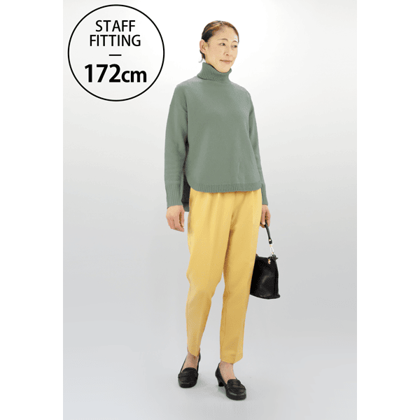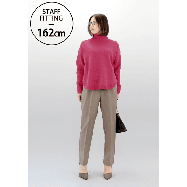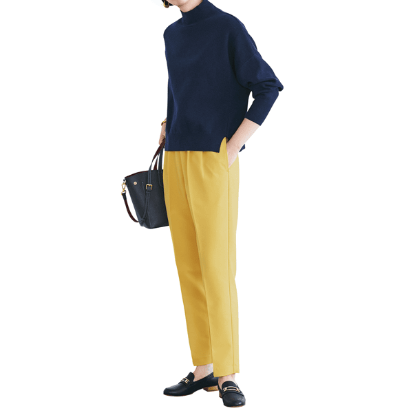 きちんと感を持ちつつ洗濯機で洗えるのがうれしいパンツ。ひざ下をすっと細くしたテーパードシルエットと、センタープレスで細見えします。ウエスト高めでスタイルアップ効果も。