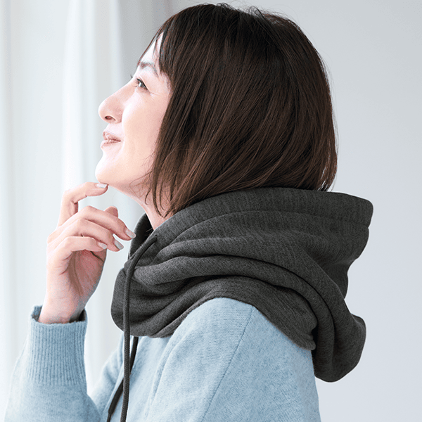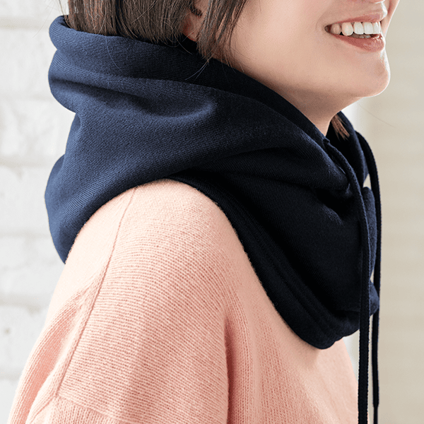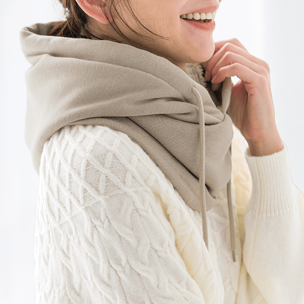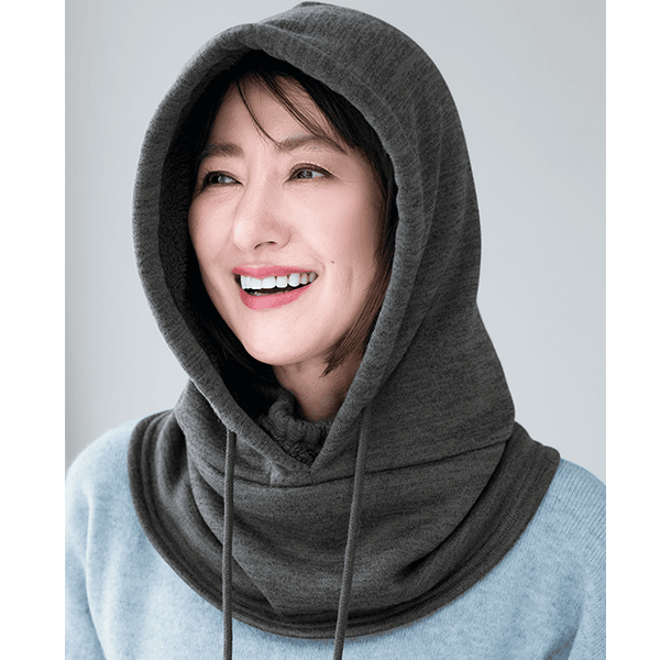 裏側がもこもこのボアであたたかく、フードとフェイスカバーですっぽり顔まわりを防寒できるネックカバー。シーンにあわせて防寒調節ができ、かぶるだけだから、自転車などでも活躍。