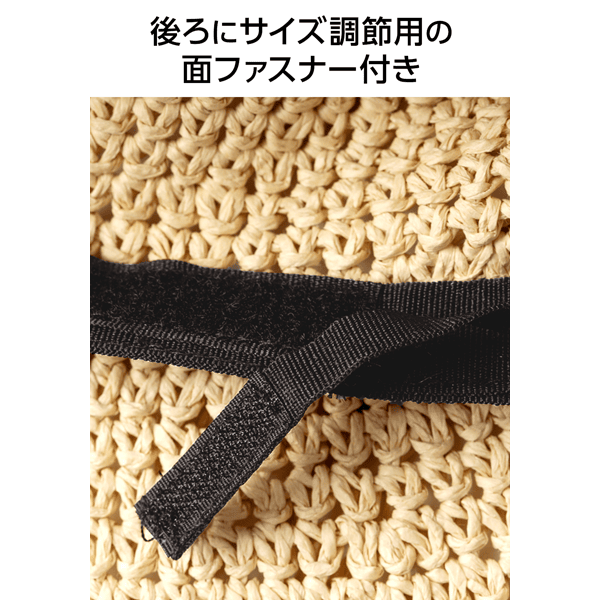 - 仕様/つば:ワイヤー入り スベリ裏(後ろ):面ファスナー付き(サイズ調節可)共生地リボン アゴヒモ用ループ付き(取り外し不可)