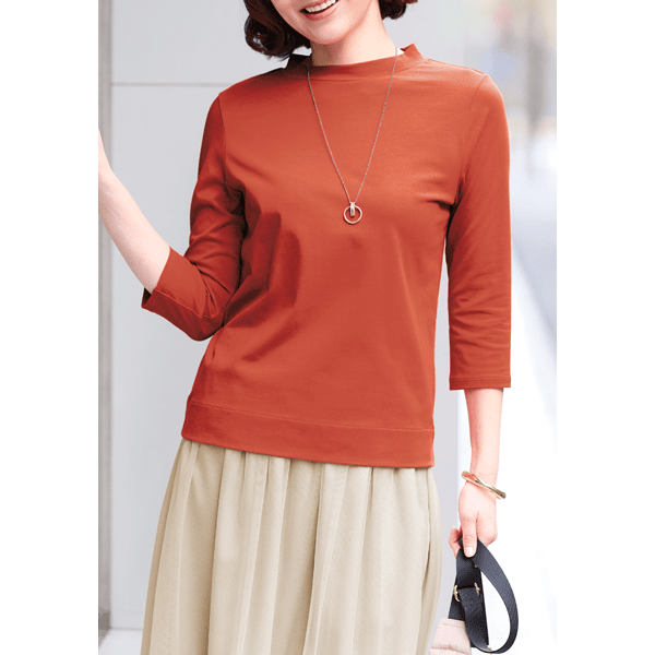 通気性コントロール機能でいつも快適!首元カバーできる上品カットソー