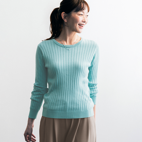 綿100%で上質なイタリア糸使用♪細見えがかなう色鮮やかなリブニット