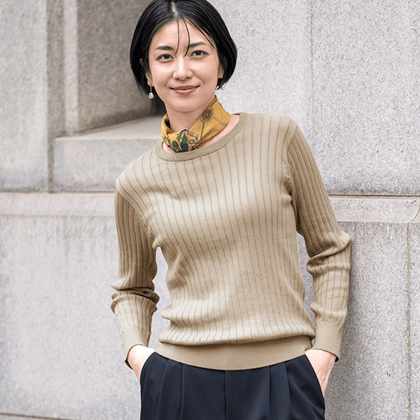 このシリーズ愛用しています。高品質で、シンプルな編み地に豊富なカラー。特に、今回のパターンは衿元が良いです。開きが小さ目なので、年を重ねた首元をカバーしてくれますし、ブラ紐を気にすることもないです。