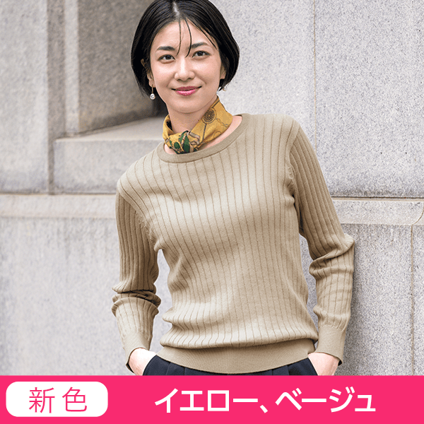 このシリーズ愛用しています。高品質で、シンプルな編み地に豊富なカラー。特に、今回のパターンは衿元が良いです。開きが小さ目なので、年を重ねた首元をカバーしてくれますし、ブラ紐を気にすることもないです。