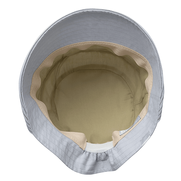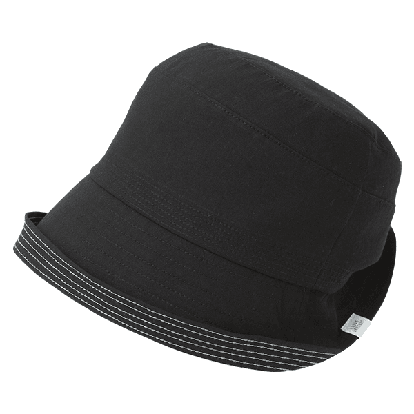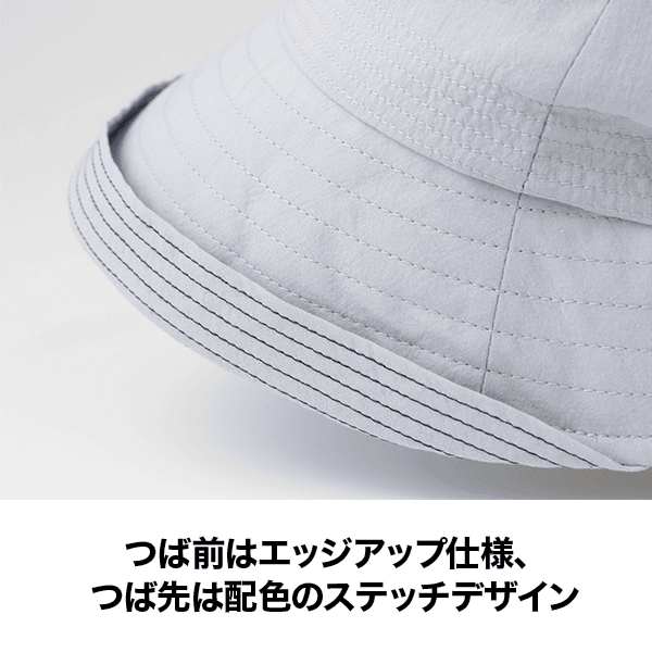 配色ステッチ、エッジアップ仕様のコンパクトなデザイン。ゴム入りでフィットしてかぶりやすく、後ろはタックでふんわりしています。