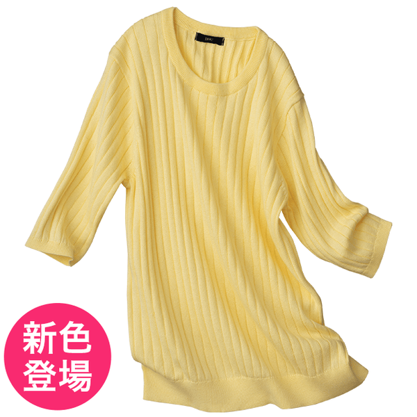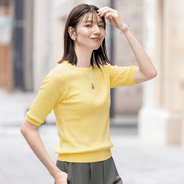 ふんわりやわらかく発色がきれいな上質ニット。二の腕をすっぽり覆う長めの半袖です。洗濯機で洗えてお求めやすい価格なのでコスパ◎。着回し力抜群で何枚あっても困りません。