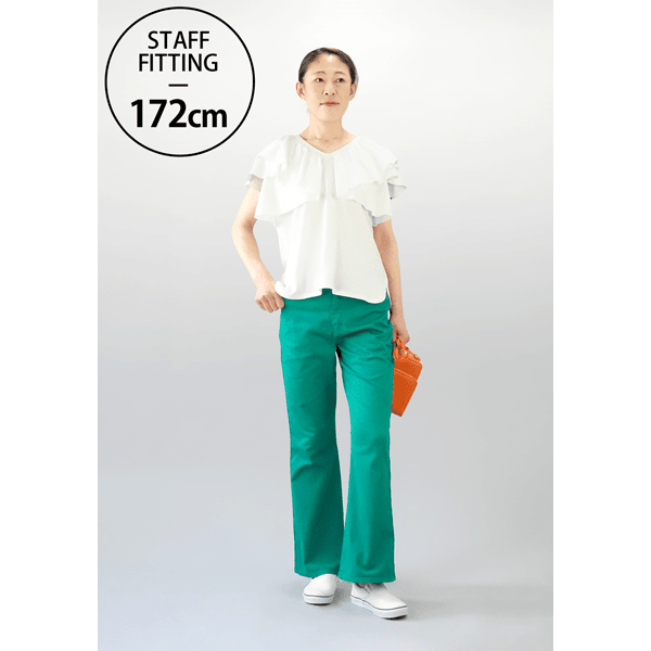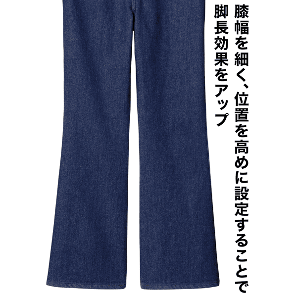 腰周りから膝にかけてタイトなフィット感が特徴のフレアパンツ。膝の位置を高めに設定し、脚長効果をUP!ベーシックでトレンドやテイストに関係なく長く愛用できるアイテムです。