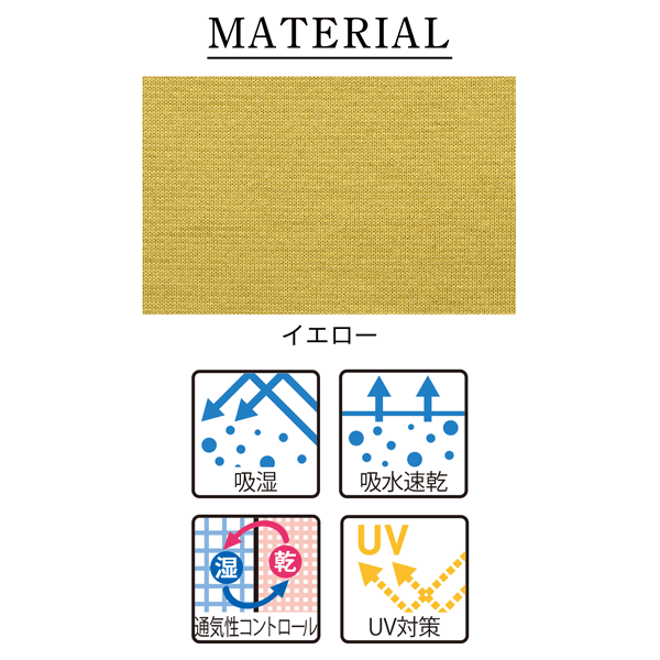汗や湿度の状態によって通気性をコントロールする「エアジーヌ™」を高混率で使用した生地。くり返し洗濯しても吸湿・吸水速乾機能を保ちます。※エアジーヌ™は三菱ケミカル(株)の登録商標です。