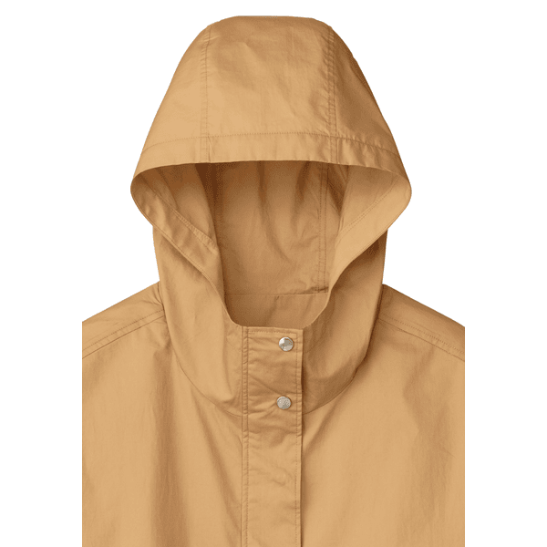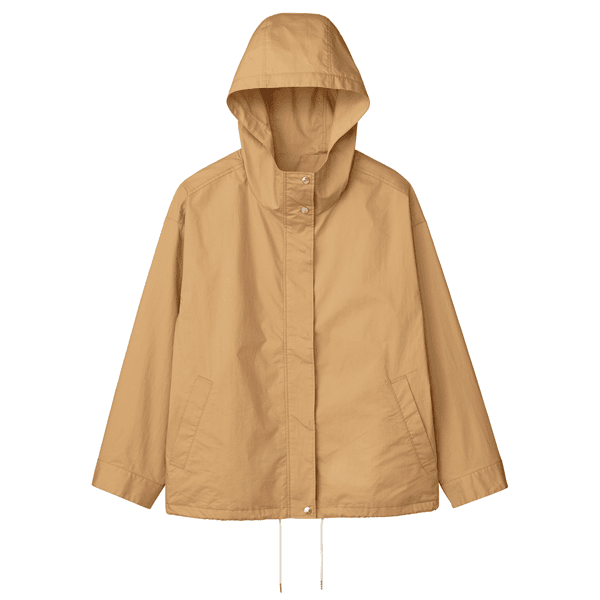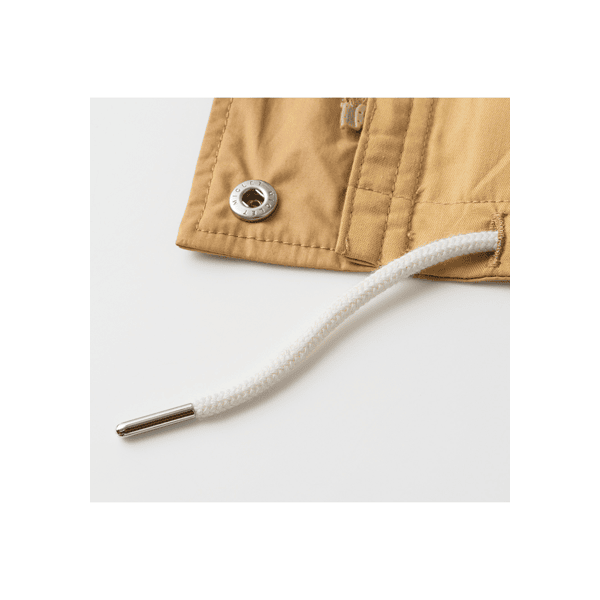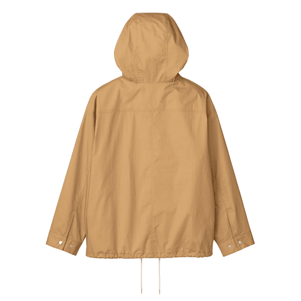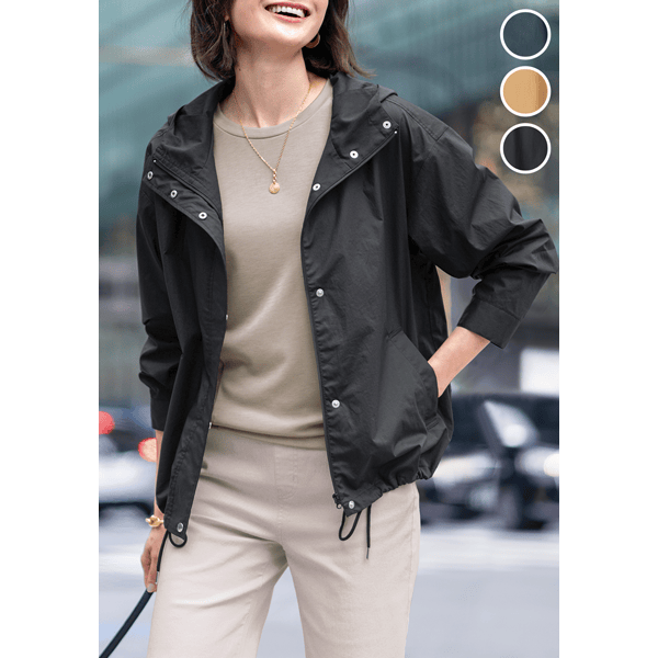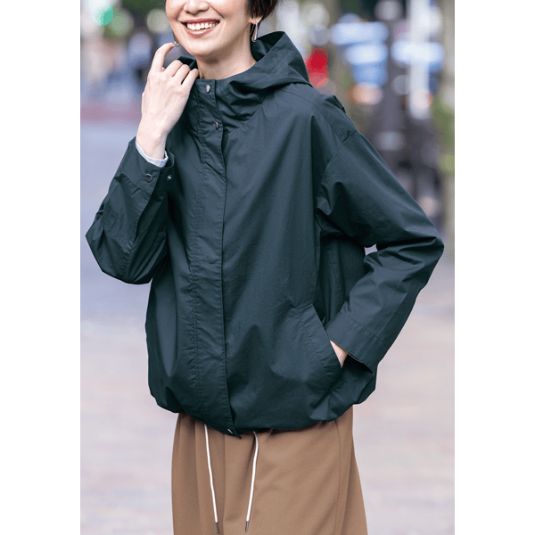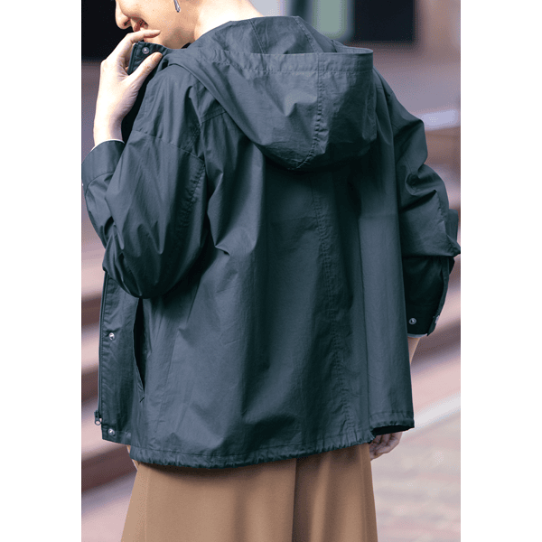 どなたでも着こなしやすい、ショート丈のジャケット。ゆとりのあるサイズ感とヒップにかかる丈感、ドローコードのアレンジでバランスもとりやすいです。綿100%のさらりとした着心地で夏まで役立ちます。