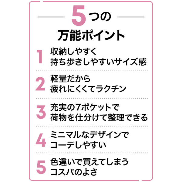 大きめサイズでも軽量で持ちやすい♪7ポケットで収納上手な万能ショルダー