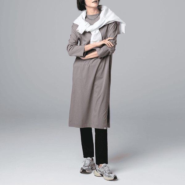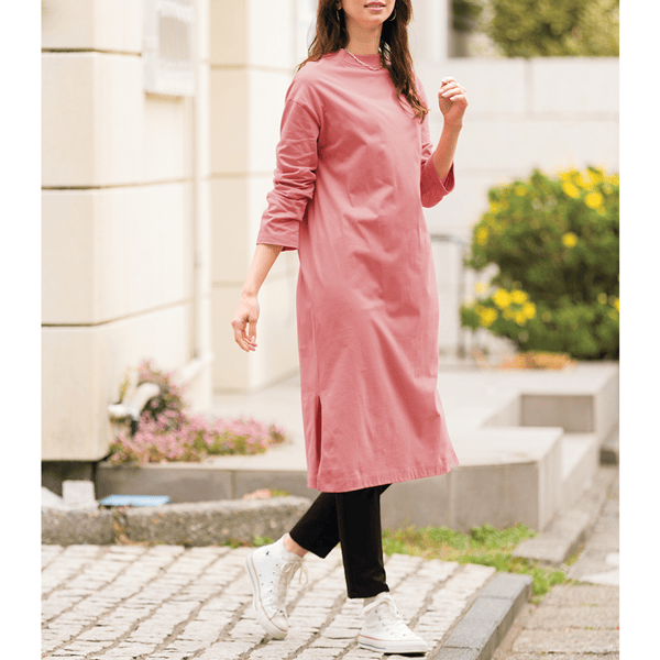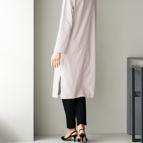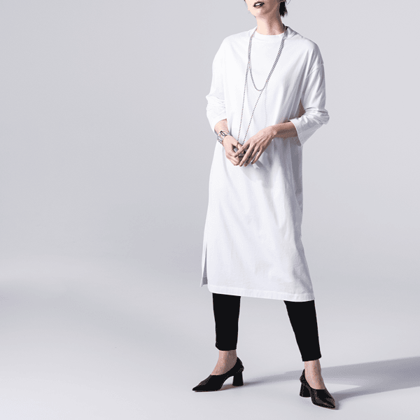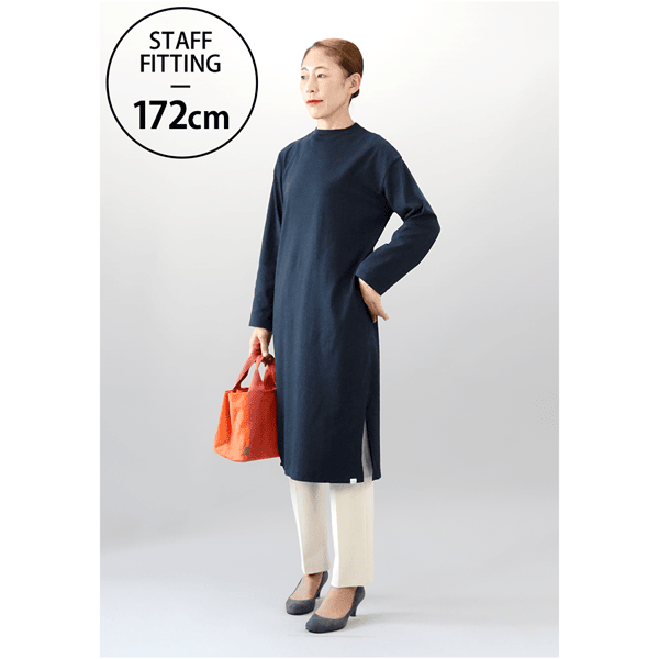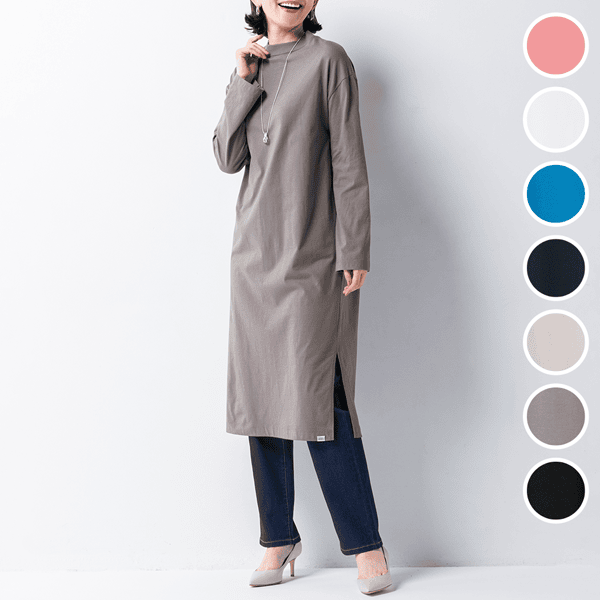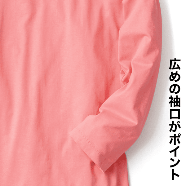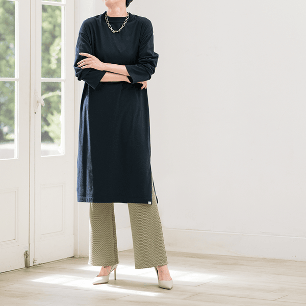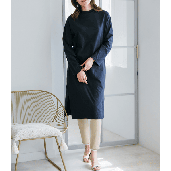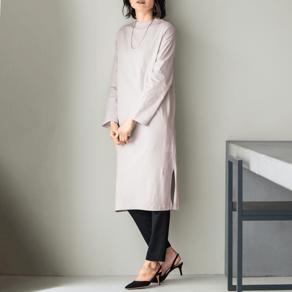 ほどよいゆとりのIラインシルエットですっきり見え、パンツやロングスカートにも合わせやすい広めの袖口がポイントのロングカットソーです。