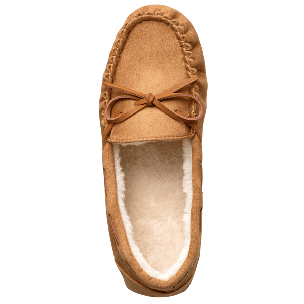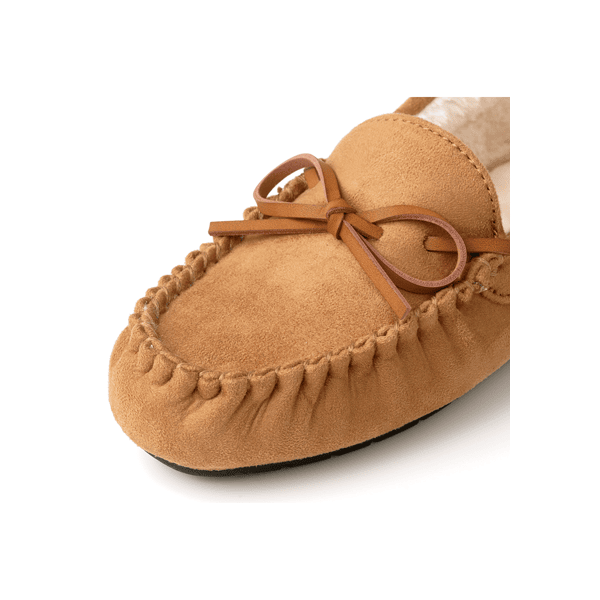 フェイクスウェードのモカシン。ふかふかボアを内側とインソールにしきつめて足をやさしく包みます。履きやすくてコーデに合わせやすいシンプルデザイン、リボン付きが新登場です。