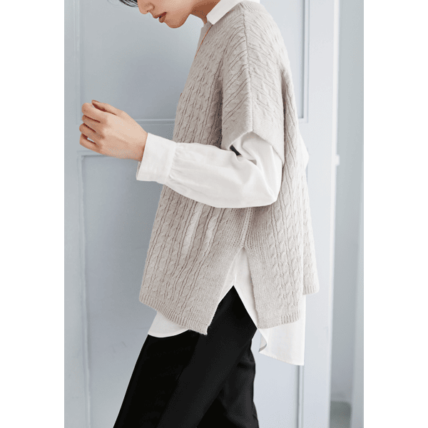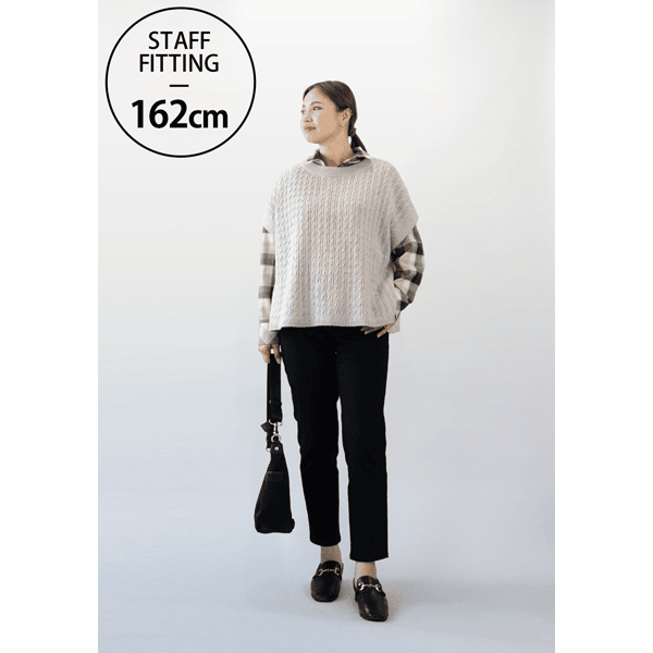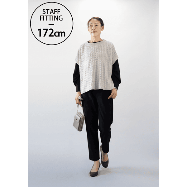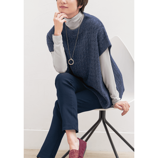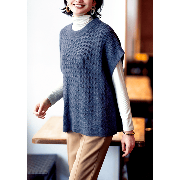 1枚でもレイヤードしても活躍するポンチョ型のビッグニット。ふんわりとしたシルエットがボディラインをカバーします。軽くてあたたかいのがうれしいです。