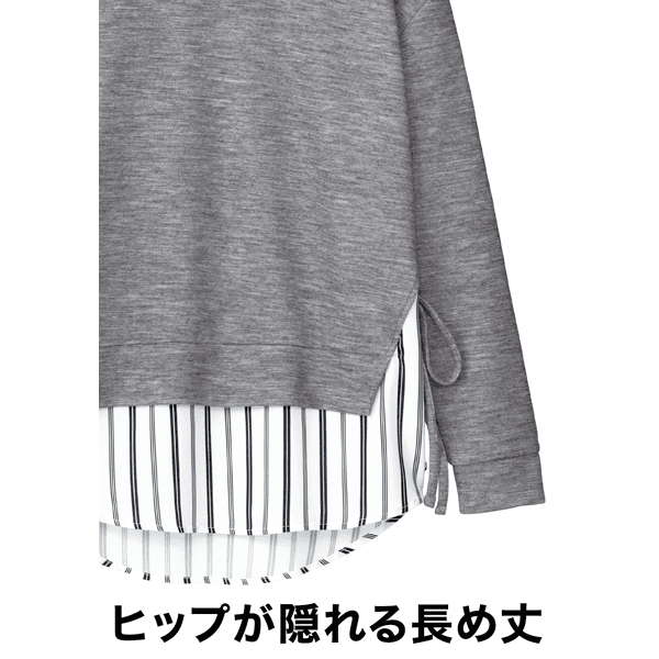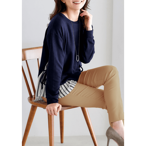 レイヤード見えして1枚でサマになる時短カットソー。ニット感覚で着られてお手入れラクチン、中肉なので秋冬を通して長く着られます。高クオリティなのにお手頃価格、コスパ最強です。
