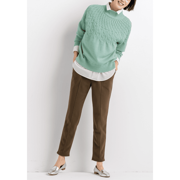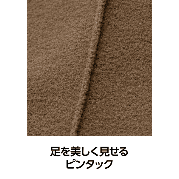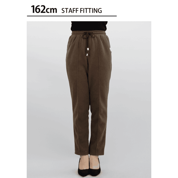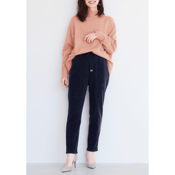 すっきりとしたテーパードシルエットで着膨れせず、どんなトップスとも相性抜群!両面起毛であたたかく、ふんわりとした肌ざわりのよいフリースパンツです。