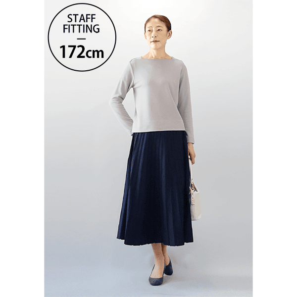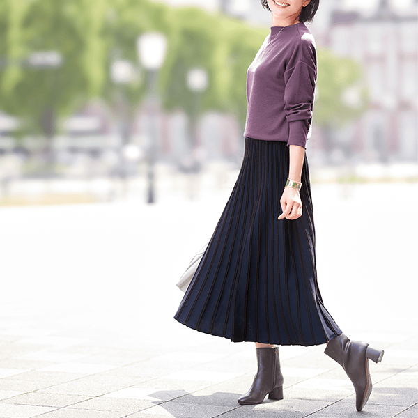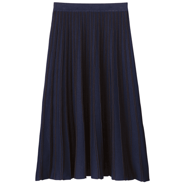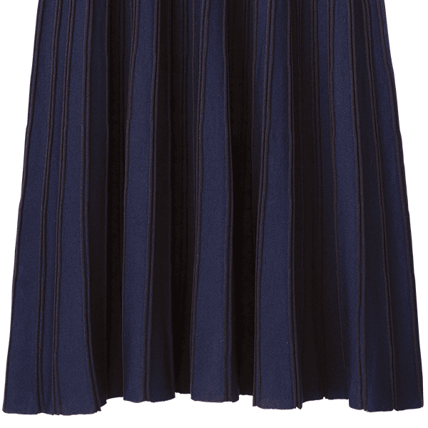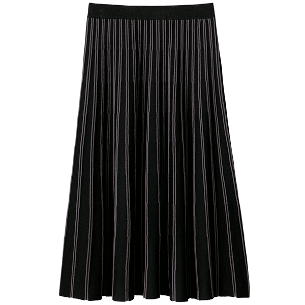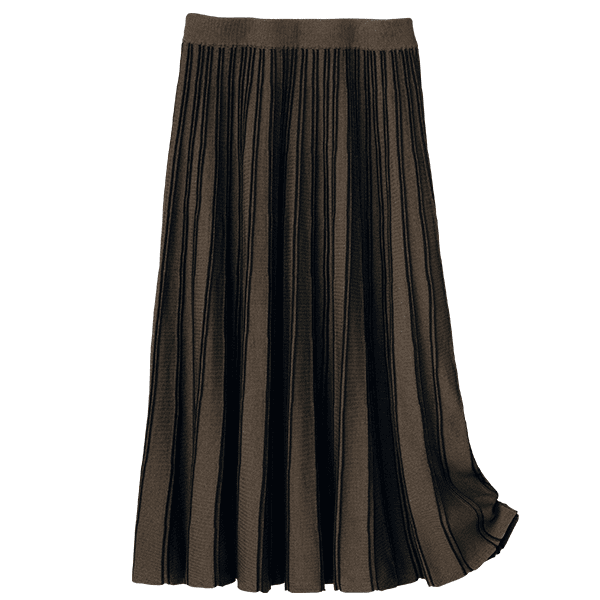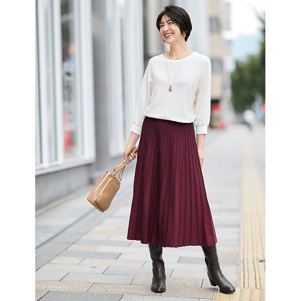 かつて、またたく間に売れていった人気のニットスカートが復活。ニットだからラクにはけるのに、品よくきれい見えがかなうのが最大の利点。そのうえ放射状に見える立体的な配色ラインが、気になる腰まわりをすっきり見せます。おまけにニットなのに洗濯機で洗えるので秋冬に重宝します。