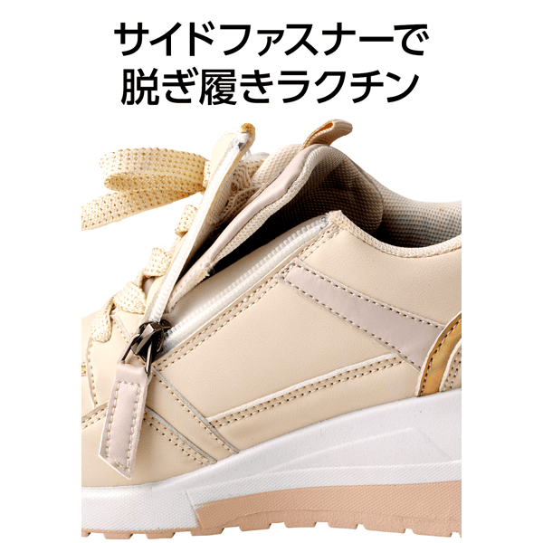 安定感のある厚底で脚長見え!ファスナー付きで脱ぎ履きラクなスニーカー