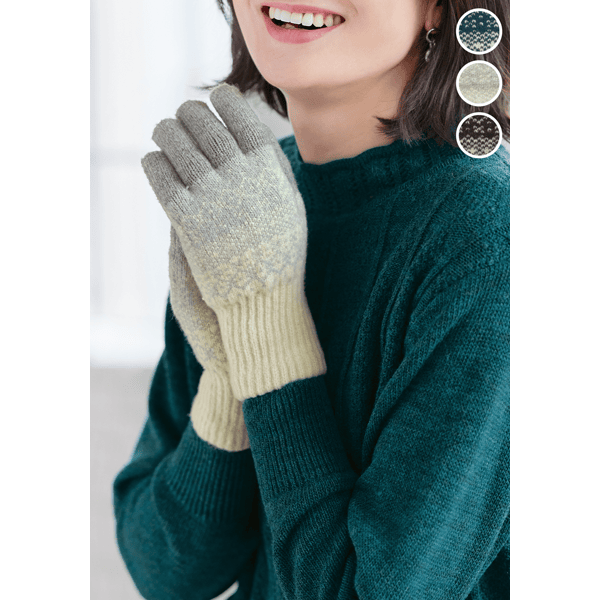 指先ぽかぽか・ニット手袋(雪の結晶)